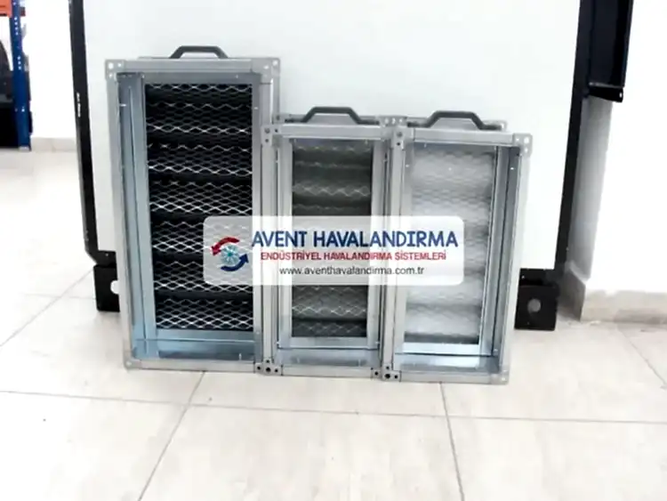 Filtre çeşitleri: Yağ Tutucu Metal Filtre, Torba Filtre, Aktif Karbon Filtre, Lif Tutucu Metal Filtre, Kaset Filtre ve Hepa Filtre olarak sıralanır.